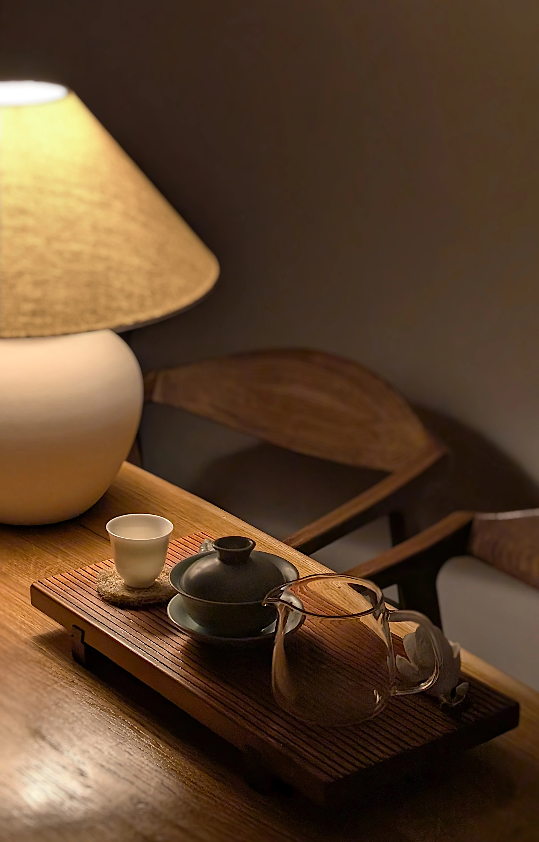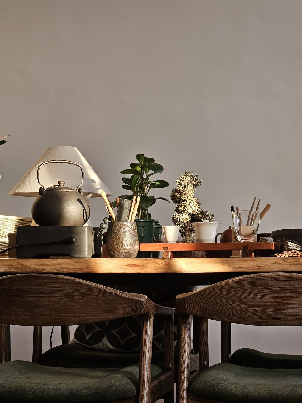 Ваза с цветами рядом с чайным столиком